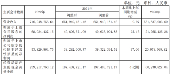 2022年年报显示,嘉和美康经营活动产生的现金流量净额为-2.59亿元。