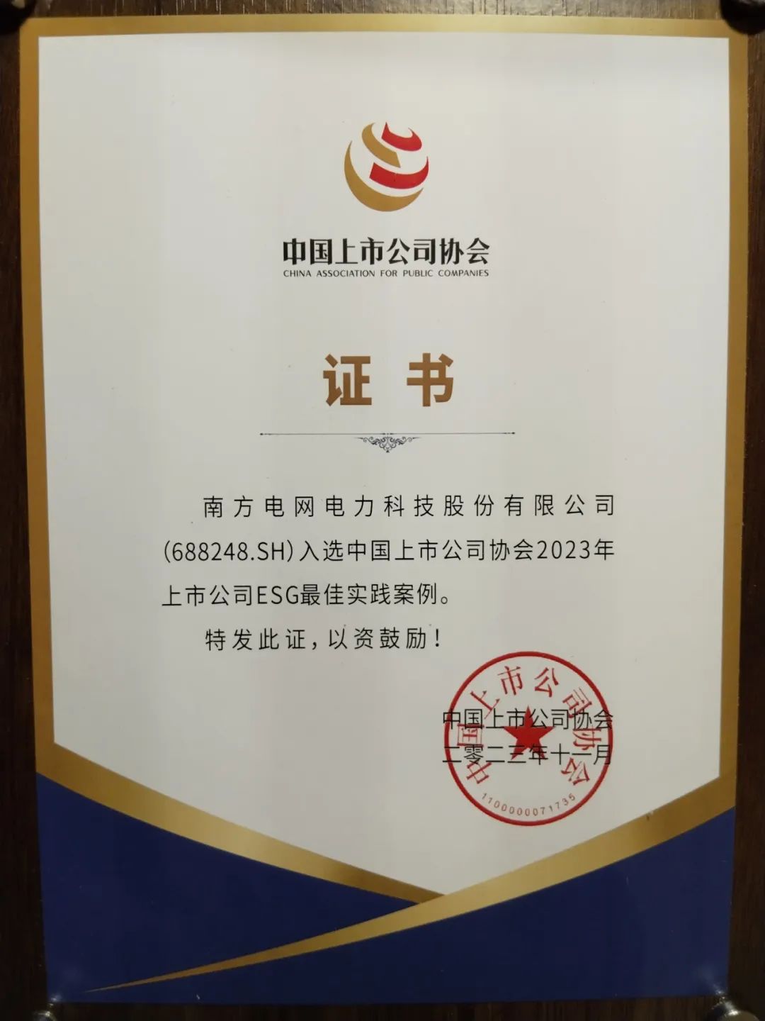 11月16日,中国上市公司协会组织召开中国上市公司可持续发展大会,南方电网电力科技股份有限公司(以下简称“南网科技公司”)题为“专业服务电力行业低碳转型发展”的案例荣获2023年度“中国上市公司ESG最佳实践案例”。