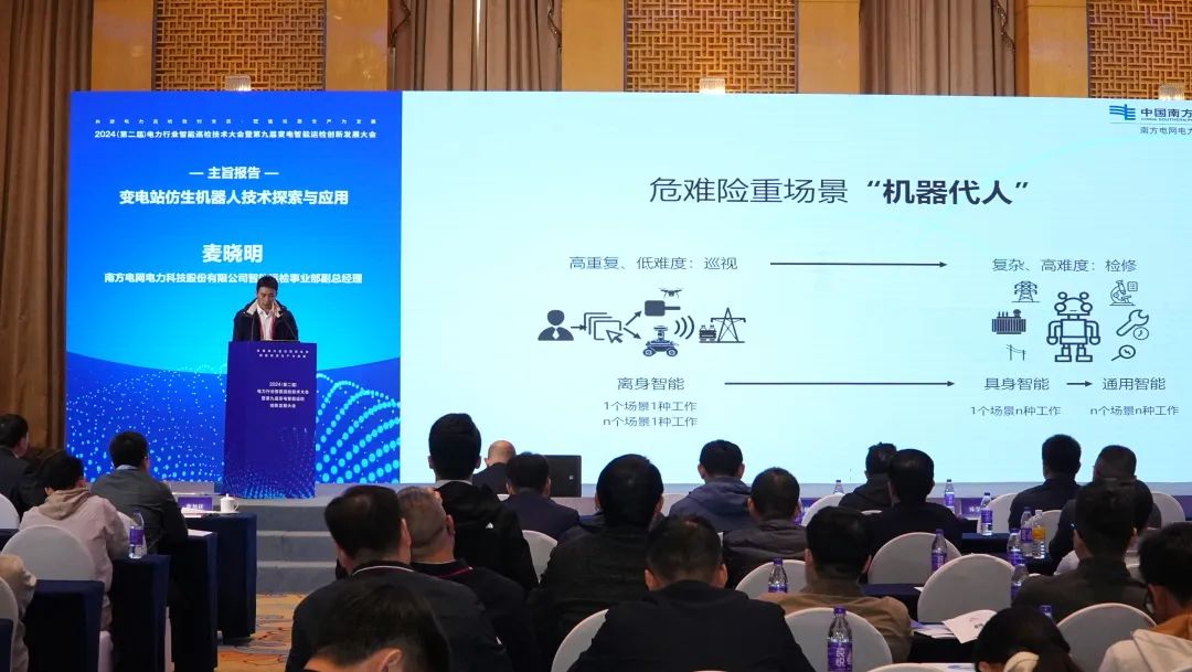 南网科技公司智能运检事业部副总经理麦晓明作了题为“变电站仿生机器人技术探索与应用”的报告。