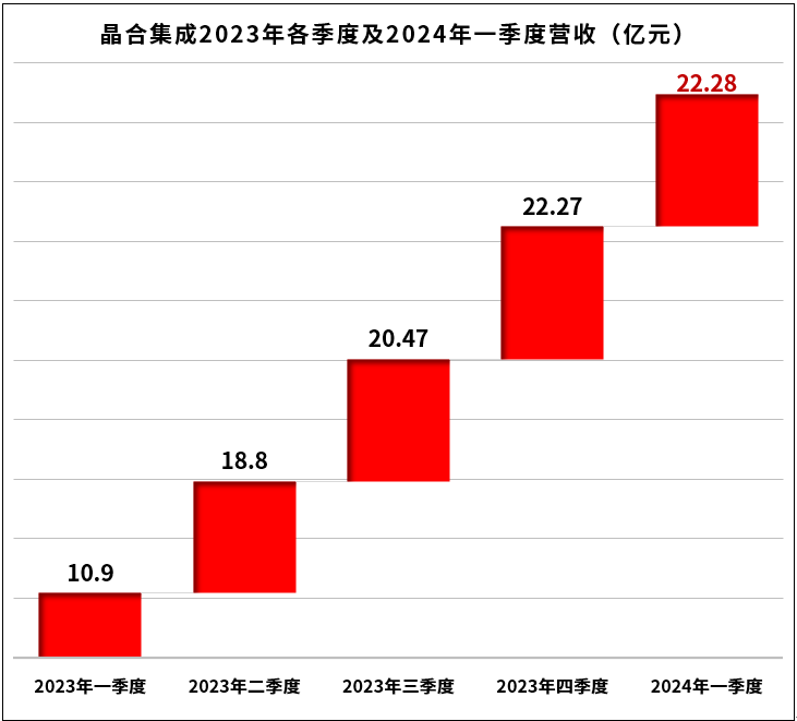 随着半导体市场渐渐回暖,市场需求稳步恢复,晶合集成在2024年第一季度实现营业收入、归母净利润较上年同期增长纷纷超过100%的佳绩。4月30日,晶合集成公布2024年第一季度报告,实现营业收入22.28亿元,同比增长104.44%,不仅延续2023年第四季度增长势头,更实现连续四个季度环比增长。
