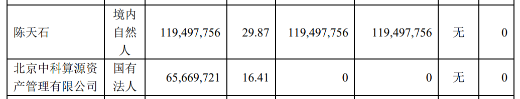截至2021年9月30日,陈天石持股寒武纪29.87%,中科院计算所100%控股的中科算源持股16.41%,二者分列寒武纪第一、二大股东