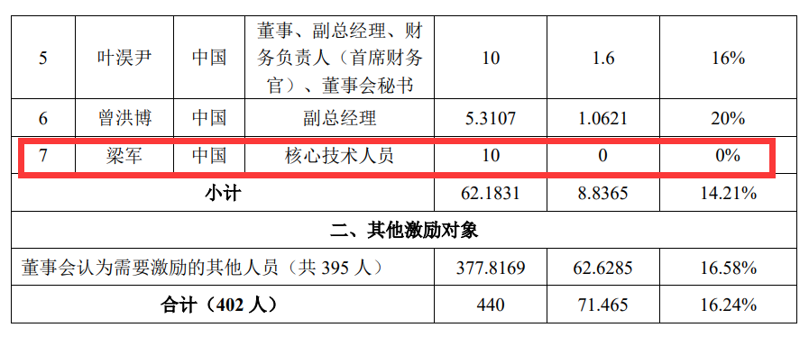 耐人寻味的是,寒武纪曾在梁军提出离职当天(2月10日)公告披露,该公司向402名激励对象归属2020年限制性股票71.5万股,但在所有董事、高管及核心技术人员中,只有梁军的本期股份归属数量为0,而公告同时提到,有2名激励对象放弃本期限制性股票的归属权利,这其中是否有梁军不得而知。