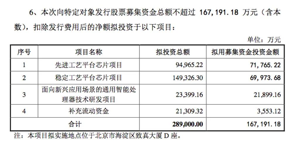 在公司董事长陈天石的领导下,2022年6月30日,寒武纪在临时股东大会上审议通过了《关于公司2022年度向特定对象发行A股股票预案》的议案,他们原本预计向特定对象发行股票募集资金总额不超过26.5亿元,用于先进工艺平台芯片项目、稳定工艺平台芯片项目、面向新兴应用场景的通用智能处理器技术研发项目以及补充流动资金。