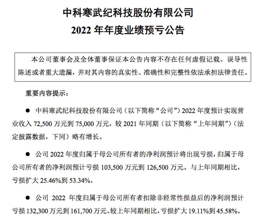 1月31日消息,寒武纪在近期发布了2022年业绩预亏公告,2022年寒武纪处于增收不增利的经营状态。