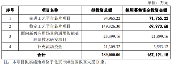 寒武纪IPO募集资金总额25.82亿元,扣除发行费用后,募集资金净额为24.98亿元。寒武纪最终募集资金净额较原计划少3.03亿元。寒武纪于2020年7月14日披露的招股说明书显示,公司拟募集资金28.01亿元,分别用于新一代云端训练芯片及系统项目、新一代云端推理芯片及系统项目、新一代边缘端人工智能芯片及系统项目、补充流动资金。