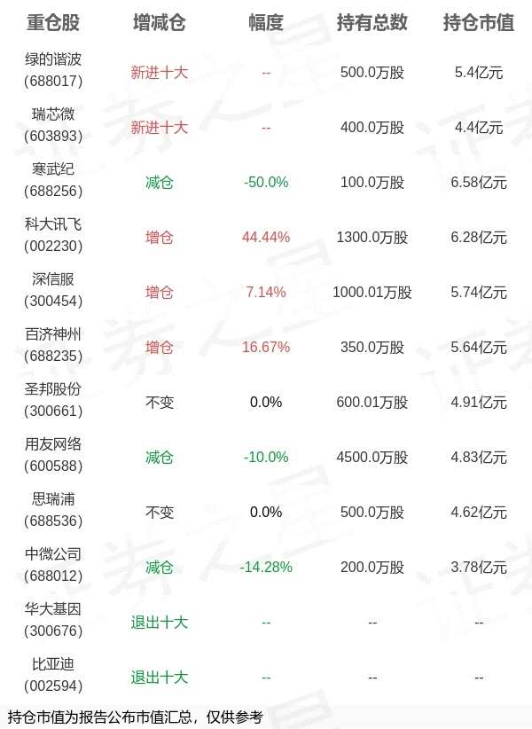 消息,1月21日万家基金旗下黄兴亮管理的万家行业优选混合型基金(LOF)公布年报,近1年净值增长率16.67%。与上一季度相比,该基金前十大重仓股新增绿的谐波,瑞芯微;其中寒武纪持仓占比9.42%,为该基金第一大重仓股;华大基因,比亚迪等退出前十大重仓股;详细数据如下: