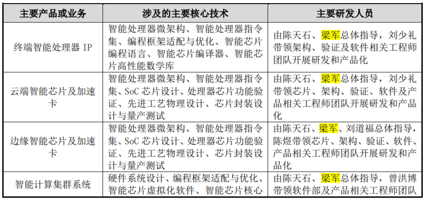 梁军总体负责公司研发工作,领导研发团队完成芯片设计与实现、芯片与板卡产品量产、基础系统软件研发等,推动了寒武纪多款芯片的研发和量产。