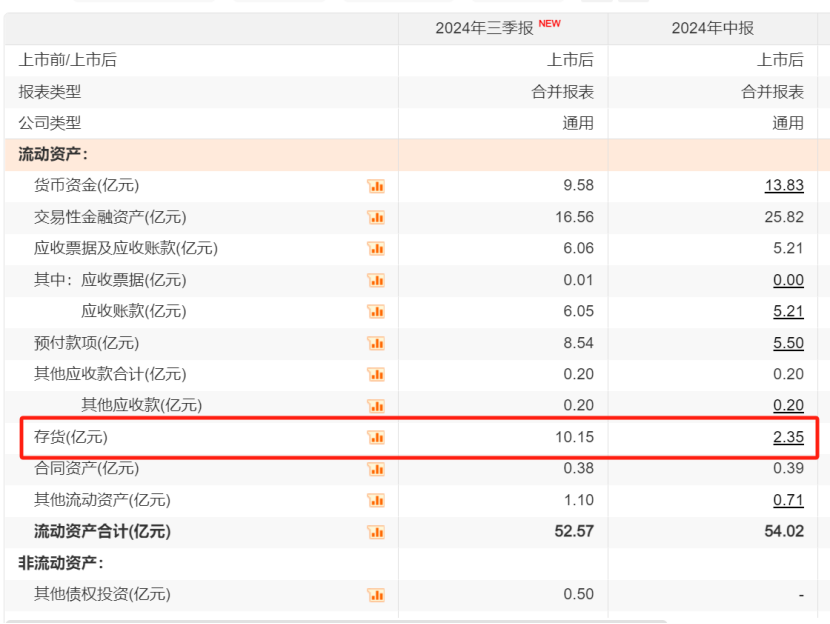 根据去年三季报,寒武纪的存货为10.15亿元,较二季度末的2.35亿元,增加了7.80亿元;同时,预付款项为8.54亿元,较二季度末增加3.04亿元。有分析指出,这意味着寒武纪在当时已经向上游加单,备料生产的规模在扩大。