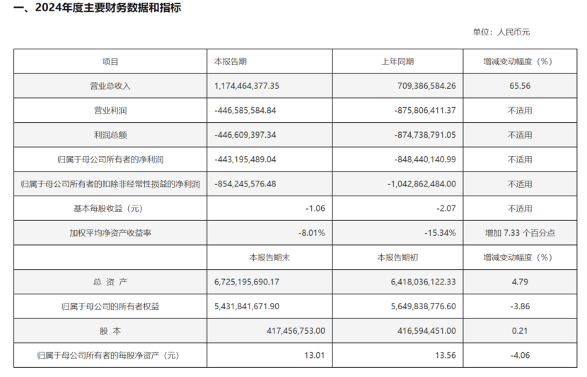根据寒武纪发布了2024年业绩快报,去年营收同比增长65.56%至11.74亿元,归母净利润则为-4.43亿元。