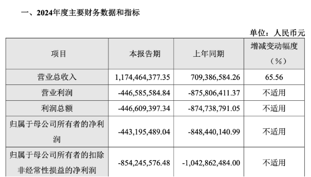 据2024年业绩快报显示,公司在2024年度实现营收11.74亿元,归母净利润为亏损4.43亿元,扣非后净利润为亏损8.54亿元,扣非前后同比亏损均有所收窄。经计算,公司上市后归母净利润累亏金额超38亿元。对于2024年亏损收窄的原因,公司称主要是报告期内营业收入较上年同期大幅增长及信用减值损失转回所致。