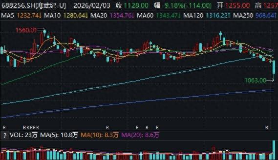 2月3日上午,寒武纪股价迅速暴跌,盘中跌幅一度超过14%,触及1063元/股的低点,公司市值也一度蒸发超700亿元。在此背景下,寒武纪3日午间发布紧急声明称:“我公司关注到今日网络传播的关于公司近期组织小范围交流等信息为不实信息,公司近期从未组织任何小范围交流,没有出具过任何年度、季度营业收入指引数据,相关信息请以公司公开披露的信息为准。公司目前研发进展顺利,经营稳步推进。”