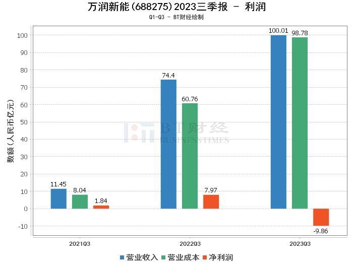 在利润方面,公司2023年三季度的营业收入为100.01亿元,同比增长了34.42%,主要系报告期销售数量增长103.54%,带动营业收入增加。然而,公司的净利润为-9.86亿元,同比下滑了219.76%,主要系报告期一方面受上游原材料碳酸锂价格波动以及下游客户需求放缓影响,公司产品销售价格下降,产品毛利率降低,相应计提存货跌价损失;另一方面,公司期末持有的客户支付的迪链票据等计提的信用减值损失。