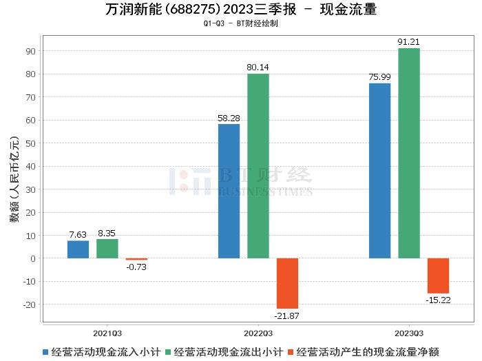 在现金流量方面,公司2023年三季度经营活动现金流入小计为75.99亿元,经营活动现金流出小计为91.21亿元,经营活动产生的现金流量净额为-15.22亿元,同比下降了30.38%,主要系收到增值税留抵退税及2022年预缴企业所得税退税。