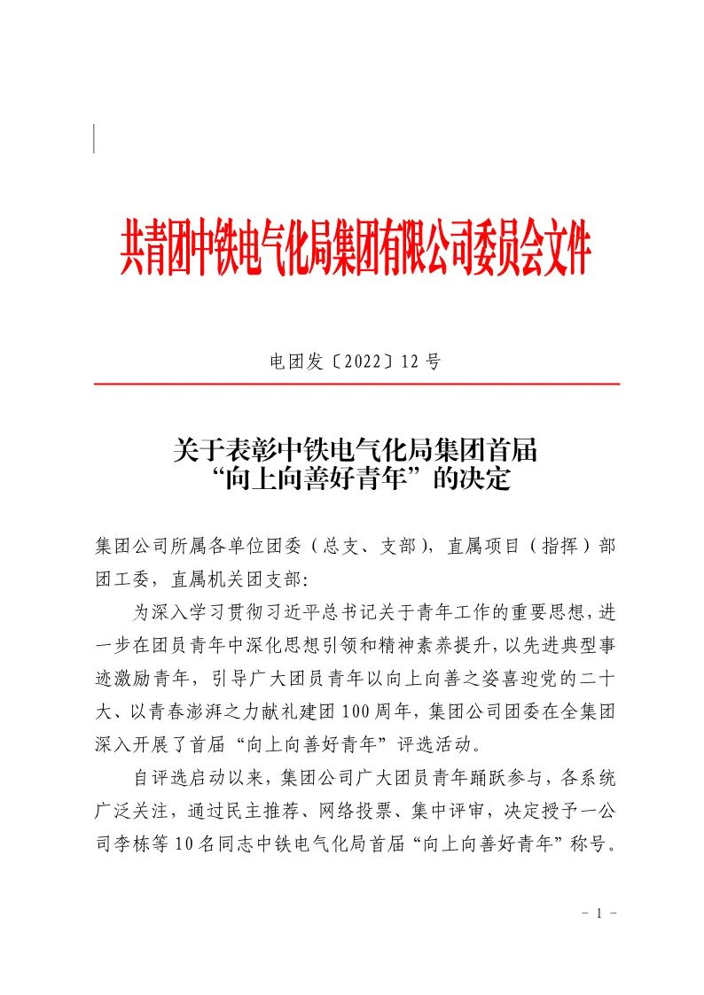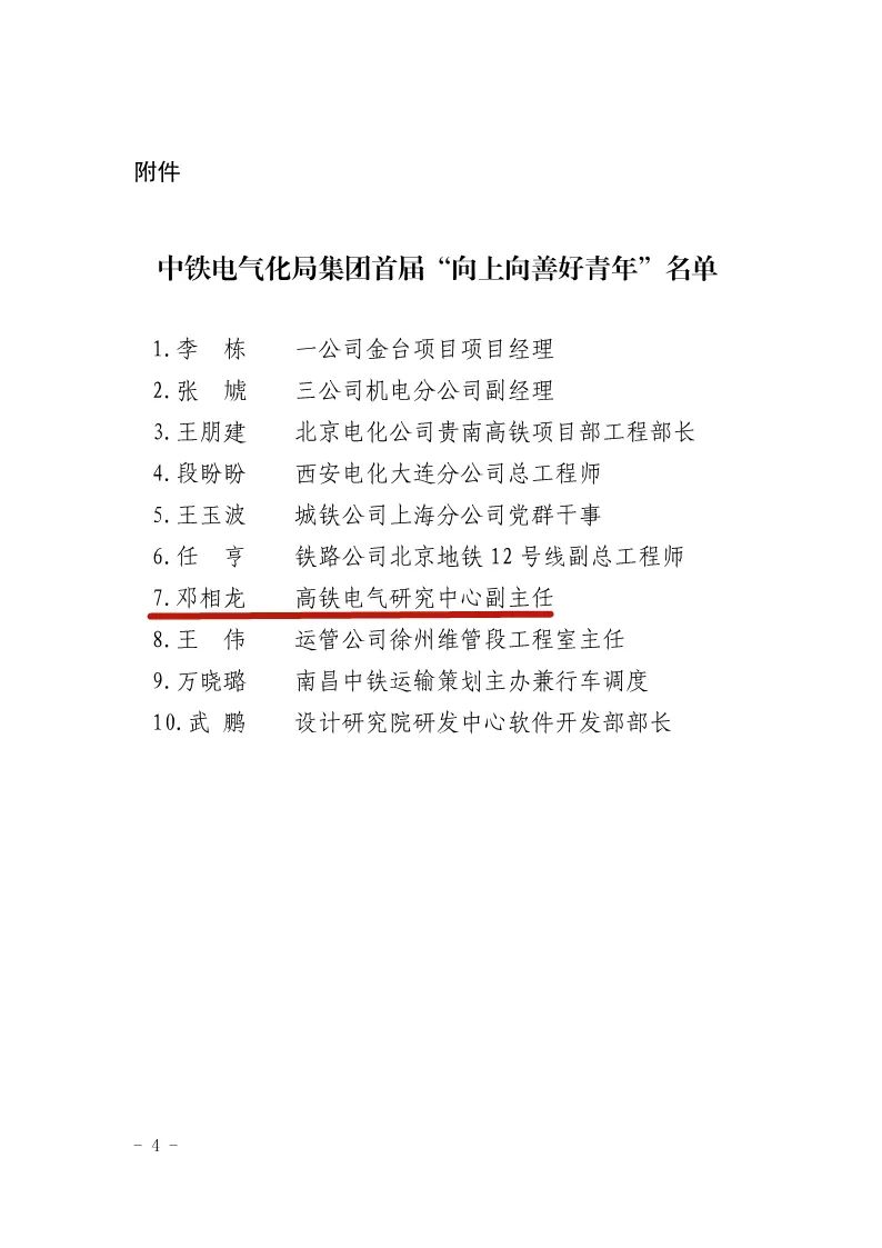 4月26日,中铁电气化局对首届“向上向善好青年”进行表彰,高铁电气邓相龙赫然在列。