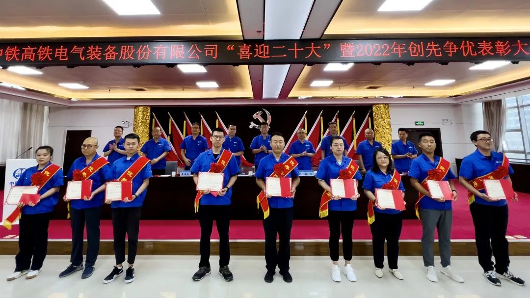 七一前夕,高铁电气召开“喜迎二十大”暨2022年创先争优表彰大会。隆重表彰一年来在公司高质量发展过程中,涌现的先进集体和优秀个人。公司领导班子成员、高管、三总师副职、各党组织书记,各部门、单位负责人参加会议。会议由公司党委副书记、董事长、总经理张厂育主持。伴随着宏壮的国歌声,会议正式拉开帷幕。