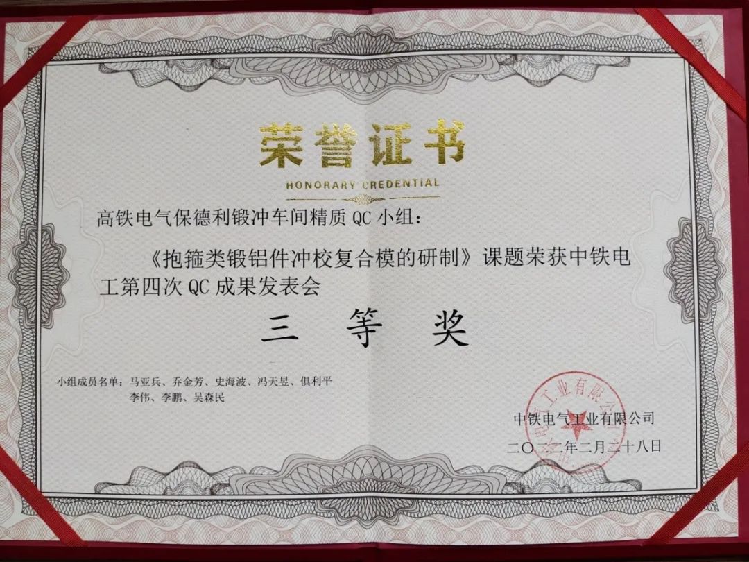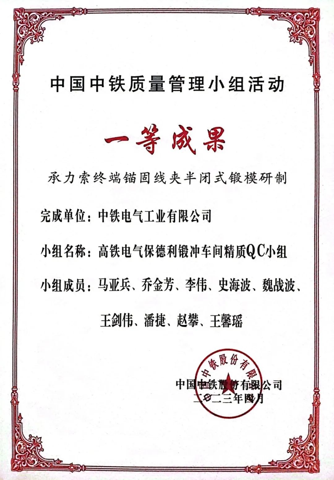 作为车间副主任,他注重加强整体队伍建设,利用“传帮带”和“导师带徒”,通过一对一指导、实操演示、案例分析等多种教学方式,将自己的丰富经验和精湛技艺毫无保留地传授给新员工,使车间新职工能够迅速独立承担工作任务,掌握必要的操作技能,并在QC等各级创新技能竞赛中脱颖而出。2023年QC成果《承力索终端锚固线夹半闭式锻模研制》获中国中铁一等奖。