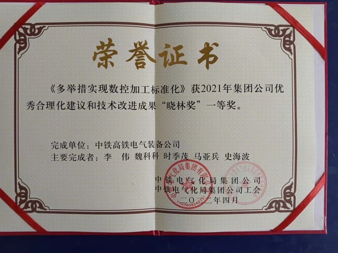 创新优化Cimatron软件三维建模,提高Mastercam软件加工路径效率,通过对工装夹具优化改进,采用统一工装连接方式与工艺定位平台定位,实现完成不同产品工装的快速更换,累计节约成本18万元,《多举措实现数控加工标准化》荣获集团公司优秀合理化建议和技术改进成果“晓林奖”一等奖。
