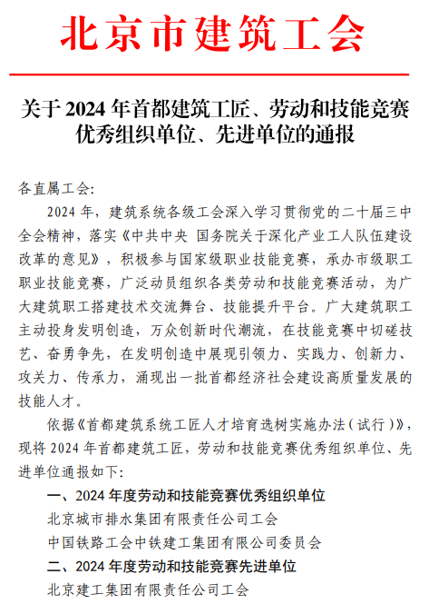 12月10日,北京市建筑工会发布《关于2024年首都建筑工匠、劳动和技能竞赛优秀组织单位、先进单位的通报》。高铁电气保德利公司李伟荣获2024年度首都建筑工匠称号。