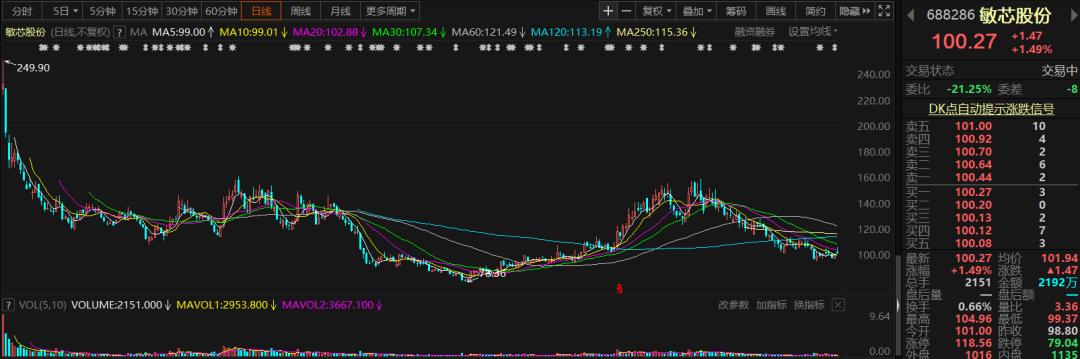 从2020年8月上市至今,其股价最高达到了近250元/股,而截至目前股价为100元左右每股,下跌幅度达到了近60%,期间股价最低跌破了79元/股,下跌幅度一度达到了近70%。