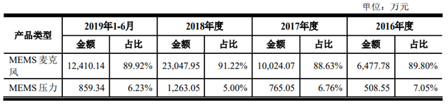 众所周知,目前敏芯主要有MEMS麦克风、MEMS压力传感器以及MEMS惯性传感器,但实际上,其业绩主要支撑来源于MEMS麦克风,据其招股书显示,MEMS麦克风业务营收占比长期维持在90%左右,由此可见占比十分大。