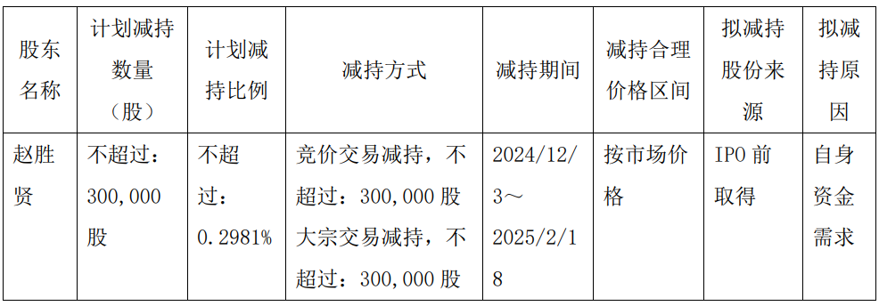 鸿泉物联(688288.SH)昨日披露公告,公司收到股东赵胜贤发来的《关于减持公司股份计划的告知函》,因自身资金安排,赵胜贤计划通过集中竞价、大宗交易的方式,合计减持不超过其持有的公司股份300,000股,即不超过公司总股本的0.2981%。