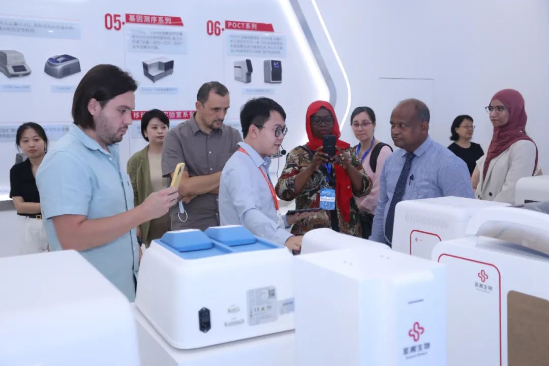 该培训班是由科学技术部国际合作司主办、中国医学科学院北京协和医院承办,于8月31日-9月14日在北京举行。培训班以“新技术和新设备在检验医学中的临床应用”为主题,邀请了张学等国内医学知名专家分享基因组学在临床检测中的应用、质谱技术在临床检测中的应用、肿瘤检测新技术进展和实验室质量与认可等内容。圣湘生物受邀在开班仪式上进行了tNGS技术主题分享,重点介绍了tNGS的检测原理、技术优势及临床适用场景。此次分享让培训班的国际专家记忆深刻,纷纷表示希望进一步了解圣湘NGS解决方案,并到访圣湘北京实地参观交流。