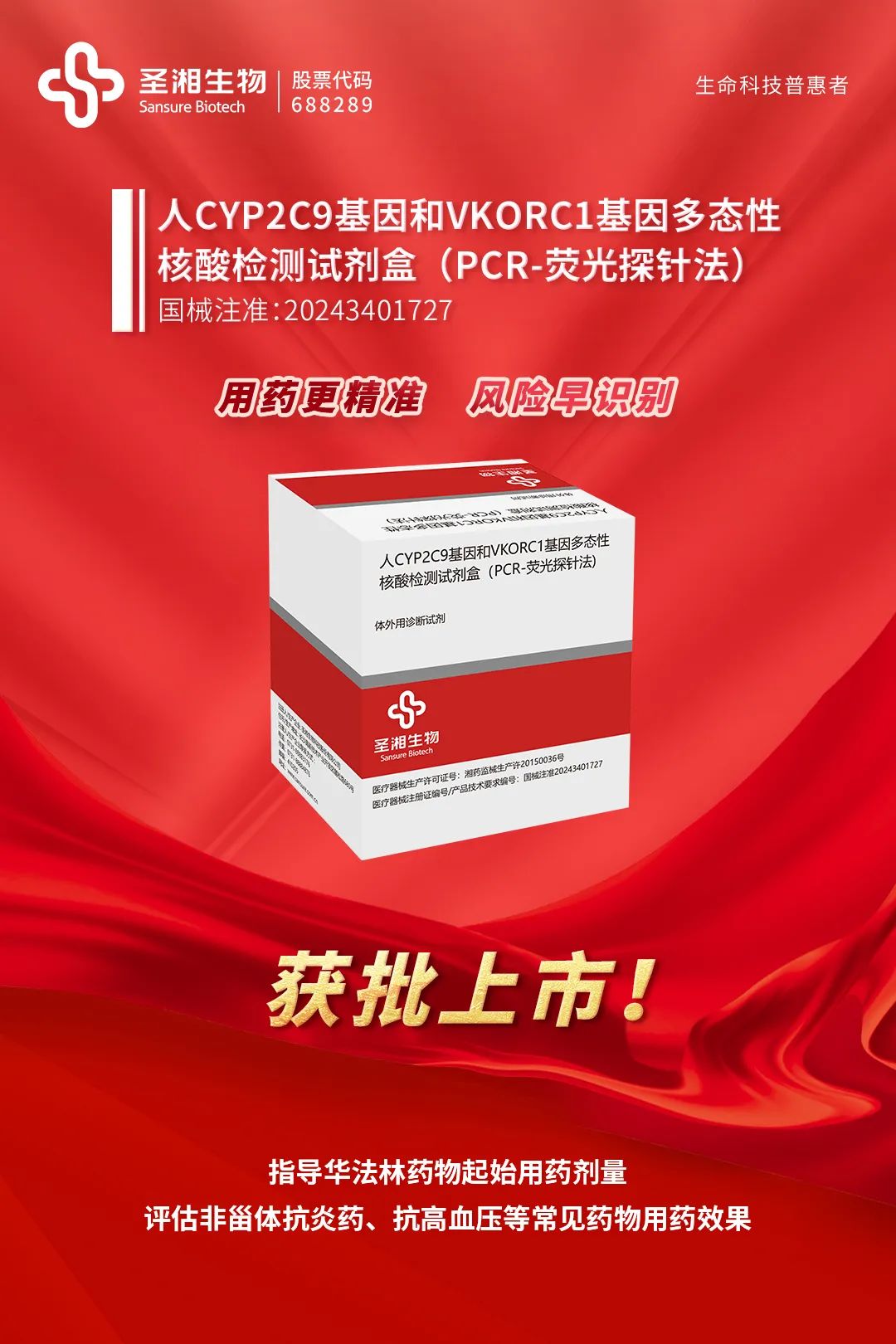 近日,圣湘生物自主研发的药物基因组系列产品——人CYP2C9基因和VKORC1基因多态性核酸检测试剂盒(PCR-荧光探针法)通过国家药品监督管理局审核,获批上市。这是圣湘生物继人MTHFR基因多态性、人ApoE基因多态性、人ALDH2基因多态性核酸检测试剂后,上市的第四款药物基因组系列产品。