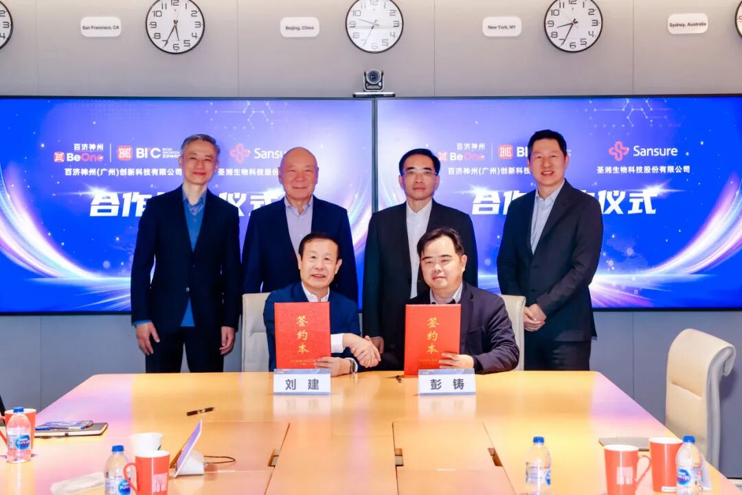 随后, 百济神州 生物岛创新中心首席执行官刘建博士与 圣湘生物 执行总经理彭铸分别代表双方签署合作协议,标志着本次“诊疗一体化”深度合作全面启动。