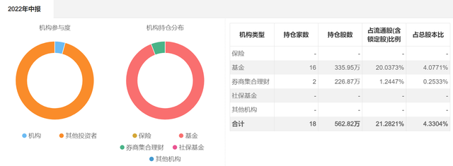 数据显示,截至2022年二季度末,有16只基金布局景业智能,持有该公司股份335.95万股,占流通股(含锁定股)比例为20.04%,占总股本比为4.077%。