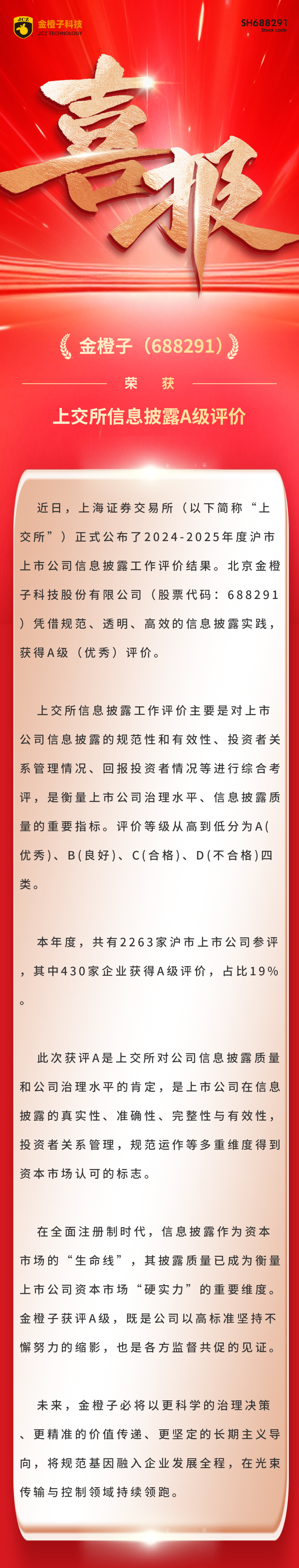 喜报 | 金橙子荣获上交所信息披露A级评价