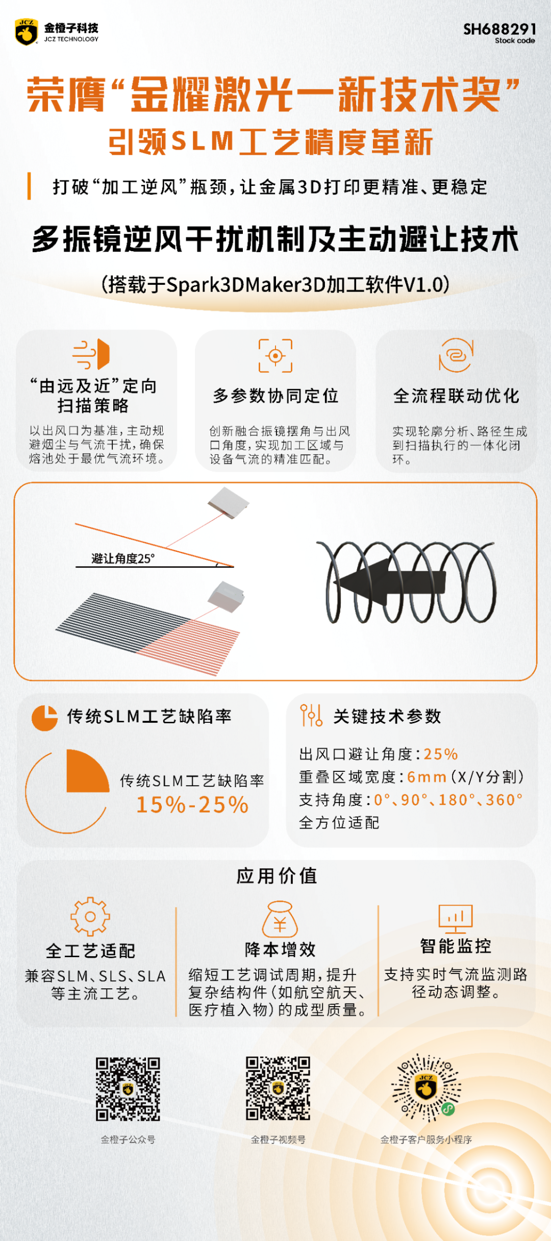 本次金耀奖评选中,金橙子科技多振镜逆风干扰机制及主动避让技术脱颖而出,成功摘得新技术奖。