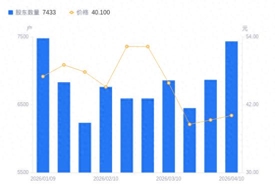 4月15日消息,数据显示,截至2026年4月10日,金橙子A股股东总户数为7433户,较上期(2026年3月31日)增加565户,增幅8.23%。公司最新A股总股本为1.03亿股,其中流通A股1.03亿股,户均持有流通A股数量为1.38万股,较上期减少1136.28股,降幅7.60%;户均持流通A股市值55.39万元,较上期减少3.36万元,降幅5.72%。