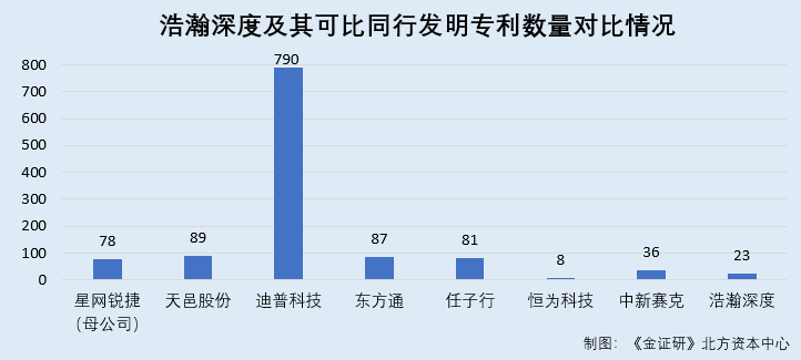 另外,浩瀚深度的发明专利数量处于行业“尾部”。