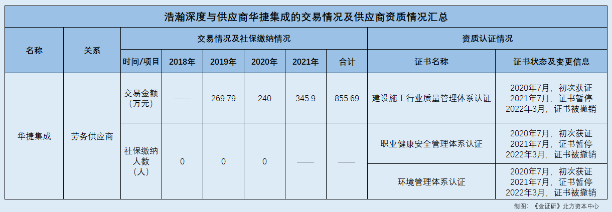 3.1 2019-2021年,与前五大劳务供应商华捷集成累计交易逾800万元