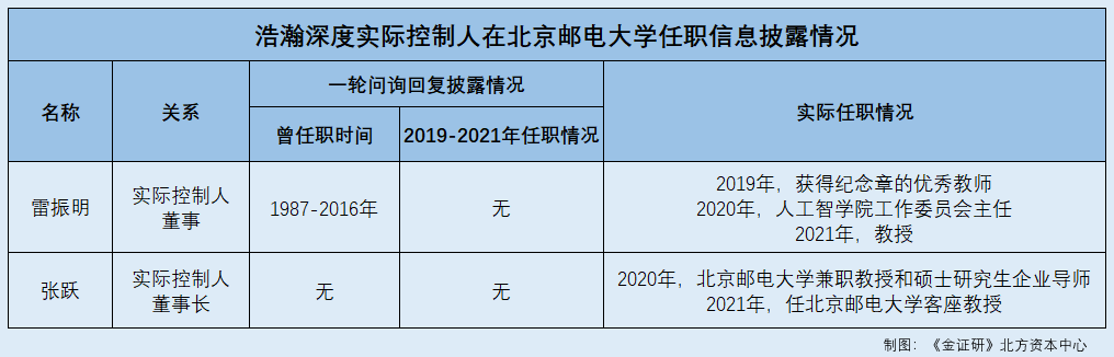 显然,2019-2021年,浩瀚深度的实际控制人张跃、雷振明或均在北邮任职。