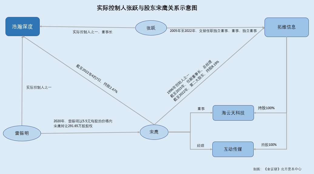 据招股书,截至招股书签署日2022年5月16日,张跃的兼职企业包括拓维信息。张跃任拓维信息的独立董事。