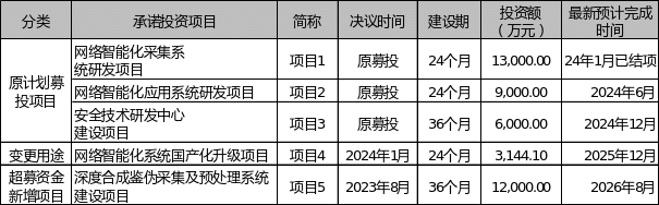 从发行人自身披露的各项目预计完成情况来看,原计划募投的三个项目中,一个已于24年1月结项,并将节余资金改用于新项目,该新项目预计25年12月结项,另外两个项目将分别于24年6月和12月结项;而对于超募资金,发行人在上市资金到账1年后于23年8月决议投资1.2亿用于新增项目,该项目属于本次募投项目“深度合成鉴伪检测系统研发建设项目”的前端系统,建设期3年,预计26年8月完成结项。