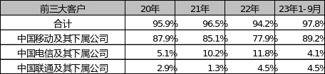 2、所处行业竞争激烈,近90%的营收来自于中国移动,未来可能较长时间会保持此态势