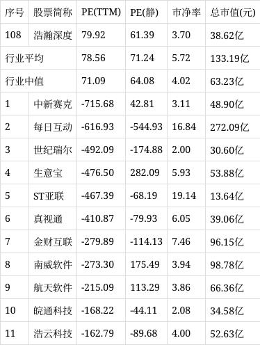 从行业市盈率排名来看,公司所处的互联网服务行业市盈率平均78.56倍,行业中值71.09倍,浩瀚深度排名第108位。