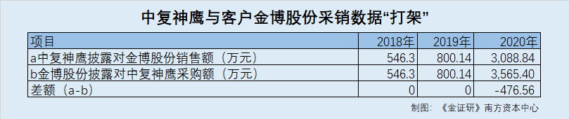 这意味着,2018-2019年,中复神鹰招股书披露其对客户金博股份销售额与金博股份信披数据一致,而2020年,双方披露的数据存在476.56万元的差额,令人费解。