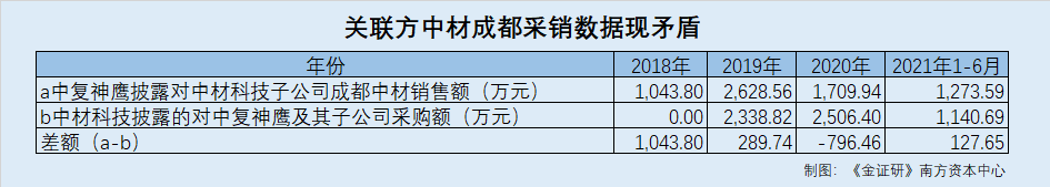 据招股书,2018-2020年及2021年1-6月,中复神鹰均存在向关联方中材科技(成都)有限公司(以下简称“成都中材”)销售碳纤维的情形,销售金额分别为1,043.8万元、2,628.56万元、1,709.94万元、1,273.59万元。