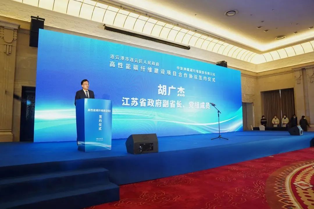 胡广杰对中国建材集团长期以来关心支持江苏发展表示衷心感谢。他指出,碳纤维产业被列为国家重点发展的战略性新兴产业之一,扩大碳纤维板块竞争优势,已经成为国家发展绿色低碳经济的重要一环。此次中复神鹰高性能碳纤维项目落户江苏,对于推动我省碳纤维材料创新链、产业链、价值链向高端迈进具有重要的战略意义。希望连云港市进一步发挥自身优势,全力以赴为企业做好服务和保障,支持企业做大做强、铸就辉煌。