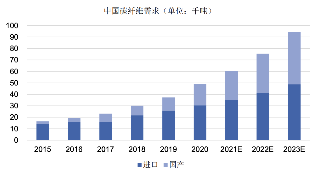 国产碳纤维正处于加速进口替代的机遇期,国内龙头企业扩产意愿强烈。