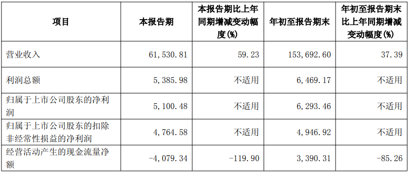 10月22日晚间,中复神鹰发布2025年第三季度报告称,2025年第三季度公司实现营业收入61530.81万元,同比增长59.23%;归属于上市公司股东的净利润为5100.48万元。