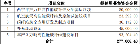 同日发布的公告显示,中复神鹰的募投项目“碳纤维航空应用研发及制造项目”已顺利结项。该项目原拟使用募集资金36,172.00万元,实际投入32,082.30万元。