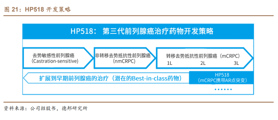 公司选择首先开发针对AR突变的mCRPC二线治疗或三线治疗,通过快速通道认定(Fast-Track Designation)迅速推进获批,同时将HP518适应症扩展到前列腺癌的早期治疗,使其成为Best-in-class药物。