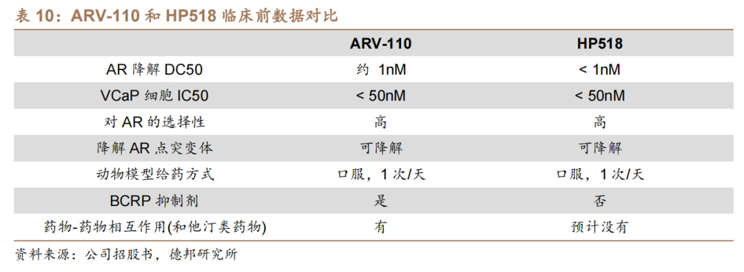 HP518的体外生物活性、药效与Arvinas的ARV-110相当。此外,HP518没有ARV-110公布出来的与他汀类药物相互作用的问题,预计HP518有更好的安全性、更广的患者人群和适用范围。