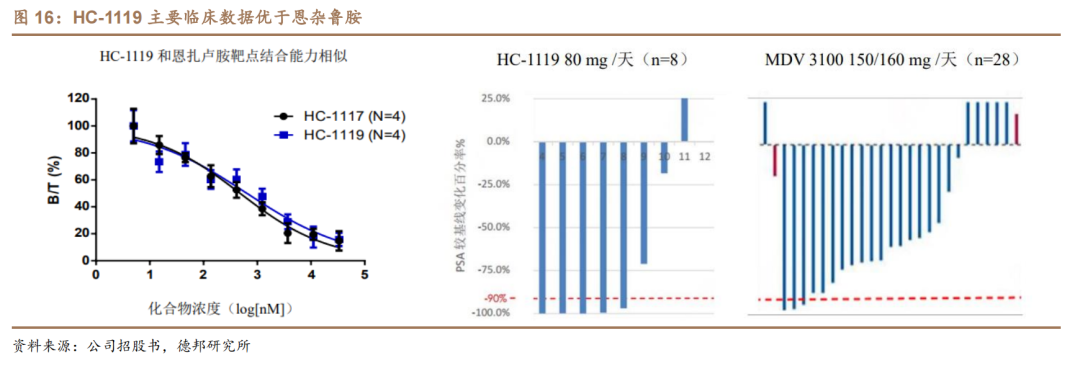 HC-1119是氘代恩扎卢胺,与恩扎卢胺相比具有有效性高、安全性好、病人依从性高、专利期长等优点。