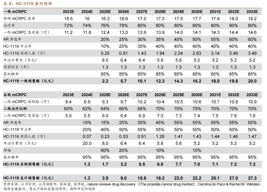 HC-1119填补了国内mCRPC末线治疗市场的空白。目前,国内和美国获批mCRPC适应症的只有阿比特龙和恩扎卢胺,可选药物方案少,HC-1119全布局mCRPC 1L到3L治疗,不仅丰富了医生的用药选择,更填补了mCRPC的后线治疗的市场空白。