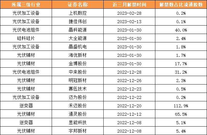15、近三个月光伏板块解禁情况